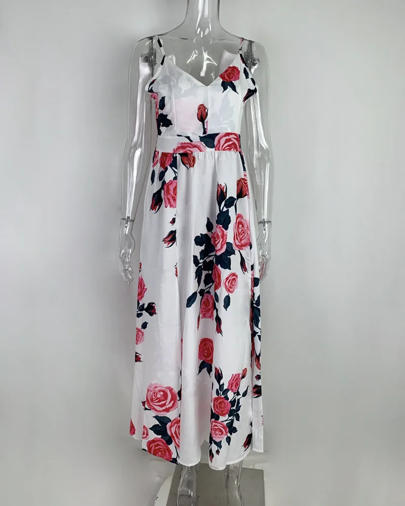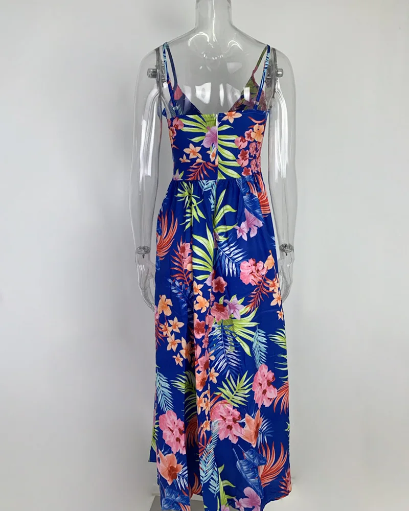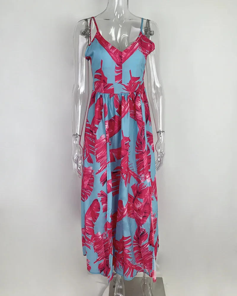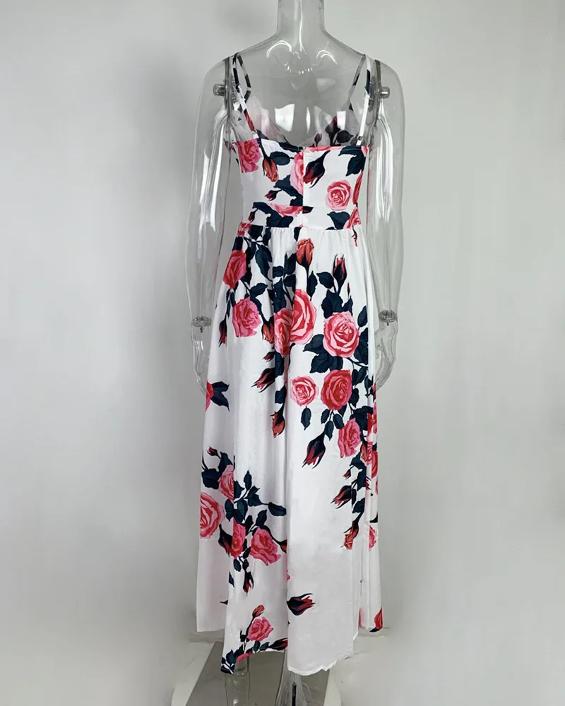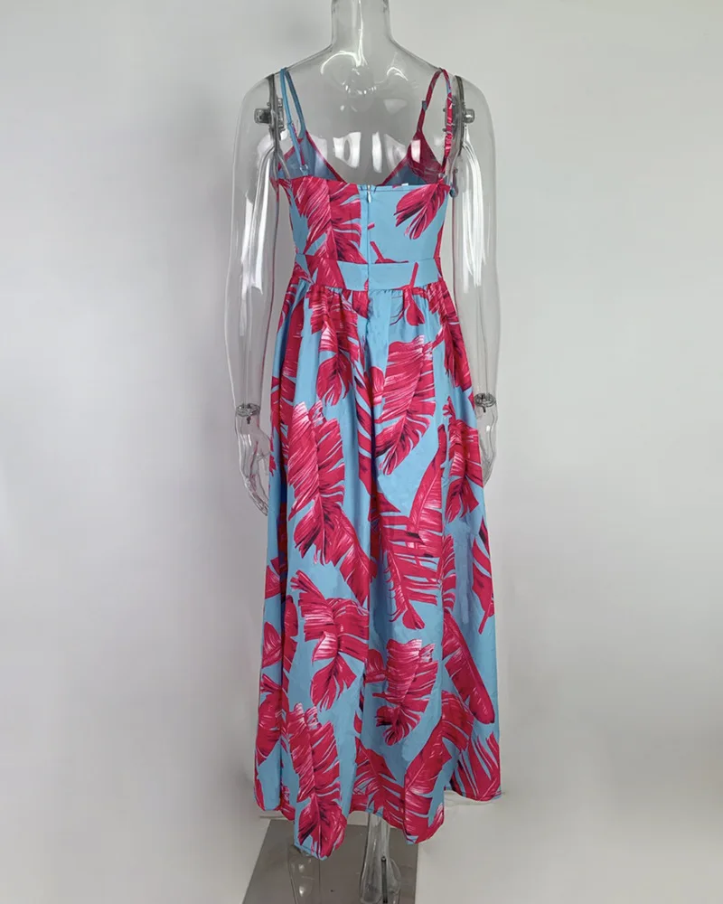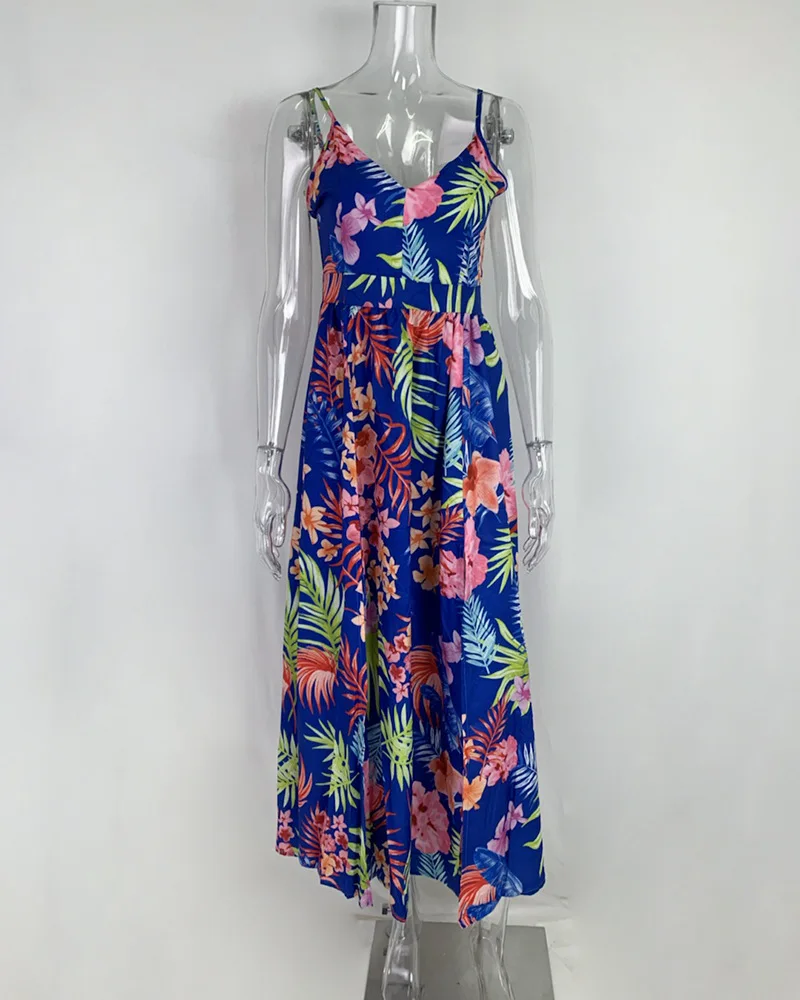 2025 Spring New Women's Style Printed V-neck Low cut Dress Sexy Pendulum Strap Dress