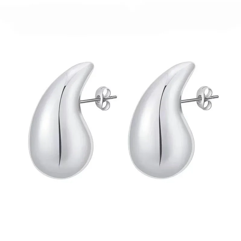 925 Sterling Silver 18K Gold Plated Chunky Dome Water Drop Earring for Women Vintage Glossy Thick Teardrop Hoop Earrings Jewelry