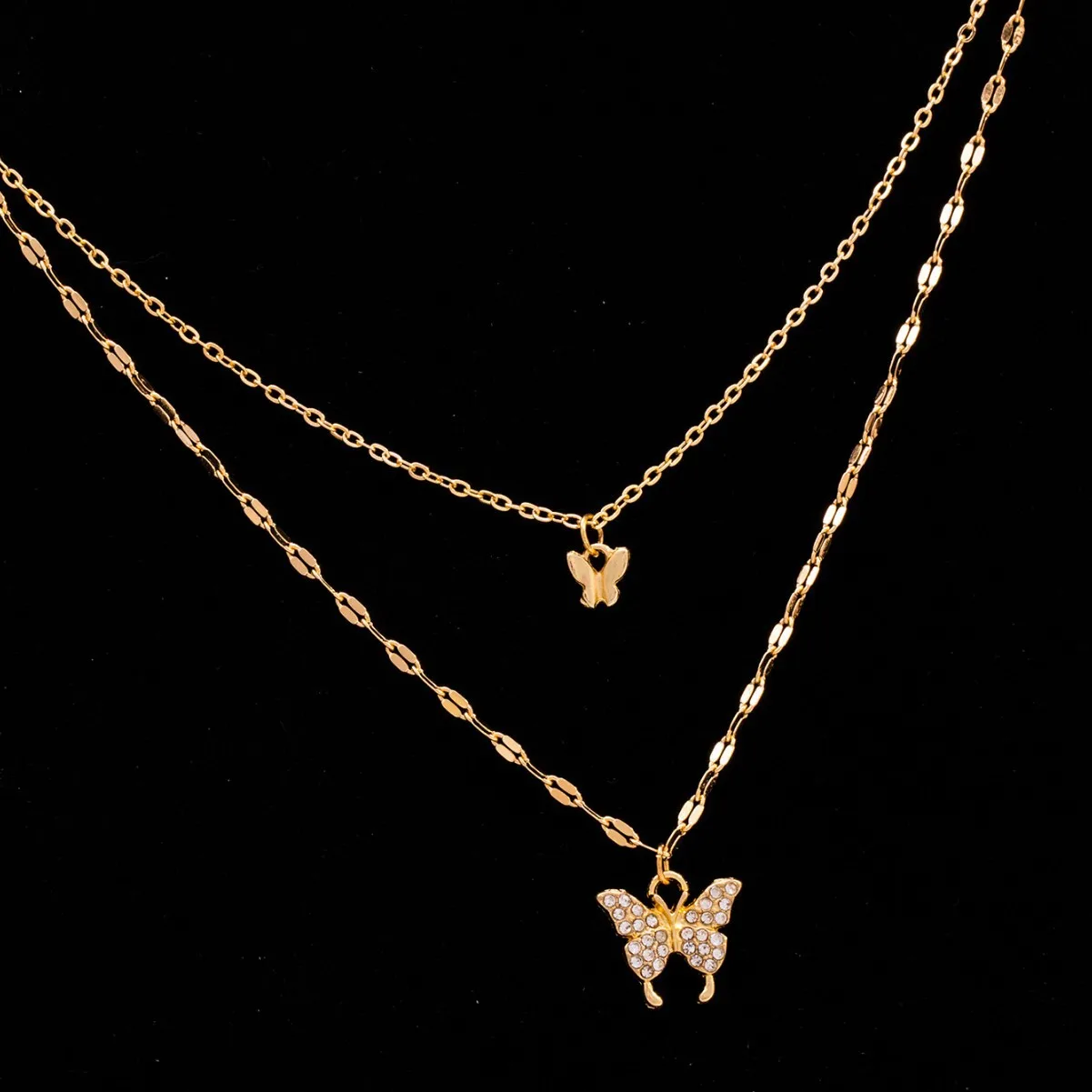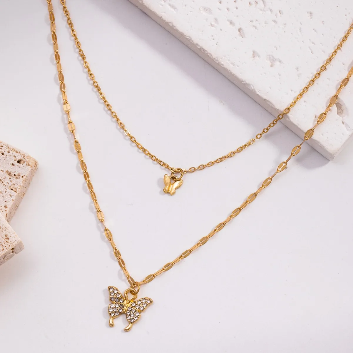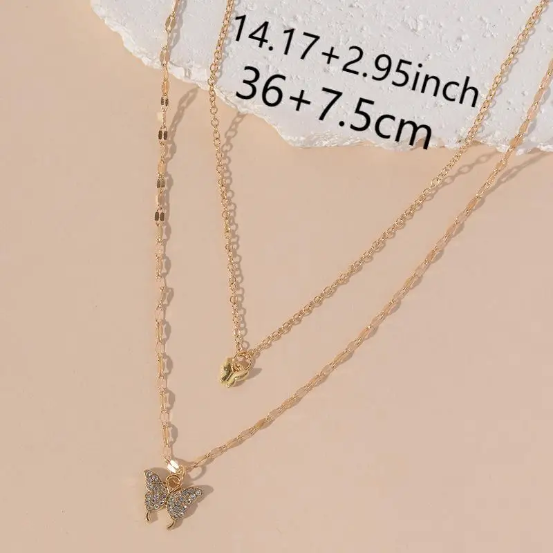 Exquisite Versatile Sparkling Artificial Rhinestone Butterfly Pendant Necklace for Women Elegant Double-layer Choker Necklace