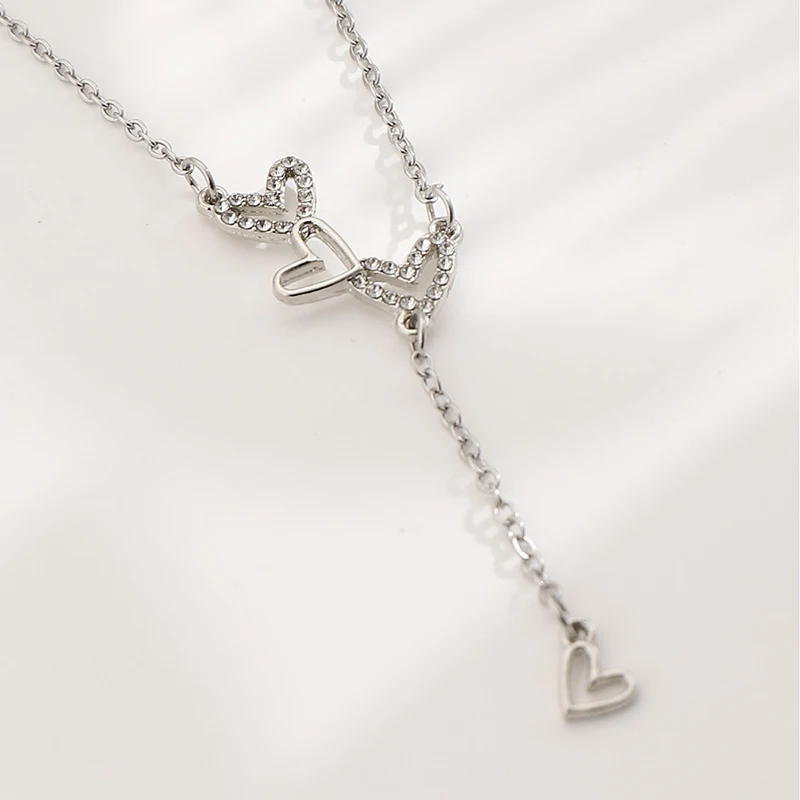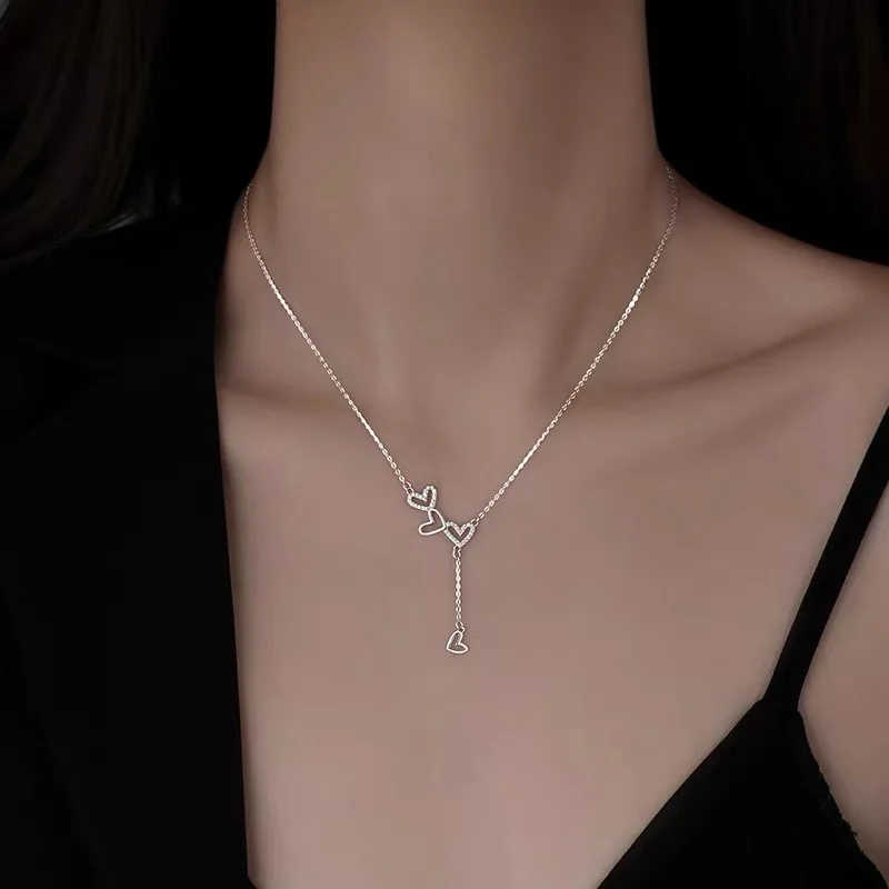 Minimalist Zircon Heart-Shaped Pendant Necklace for Women Thin Chain Hollow Love Personalized Fashionable Women's Necklace