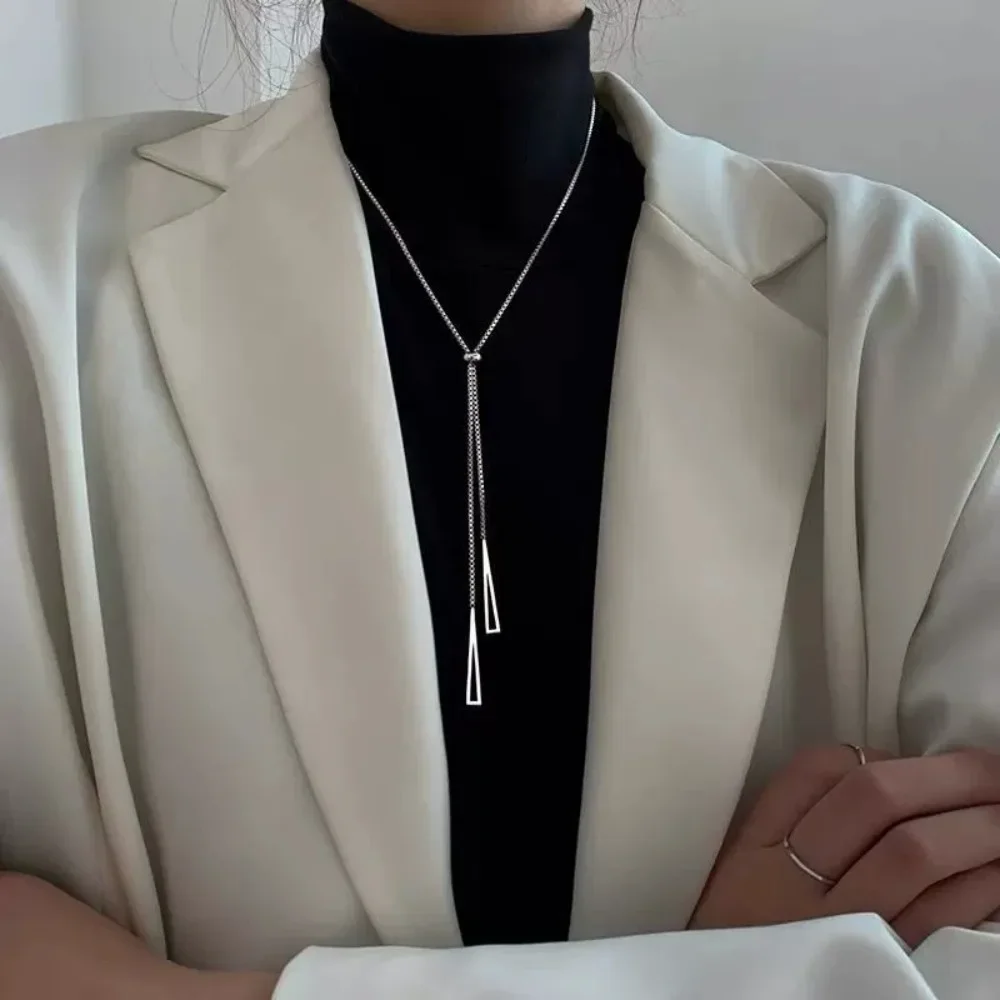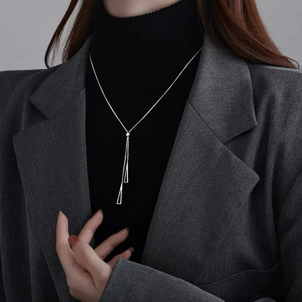 New Simple Charm Y Lariat Metal Style Silvery Golden Triangle Pendant Necklace for Women Boho Minimalist Fashion Jewelry Gifts